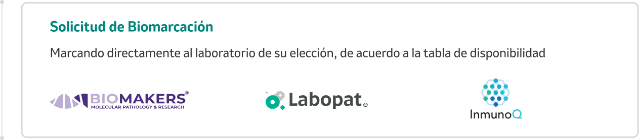 Para solicitar una prueba de Biomarcación, usted puede seleccionar el laboratorio de su preferencia. El programa PRECISA cuenta con 4 laboratorios: Biomakers, InmunoQ, Denatbio y LABOPAT.